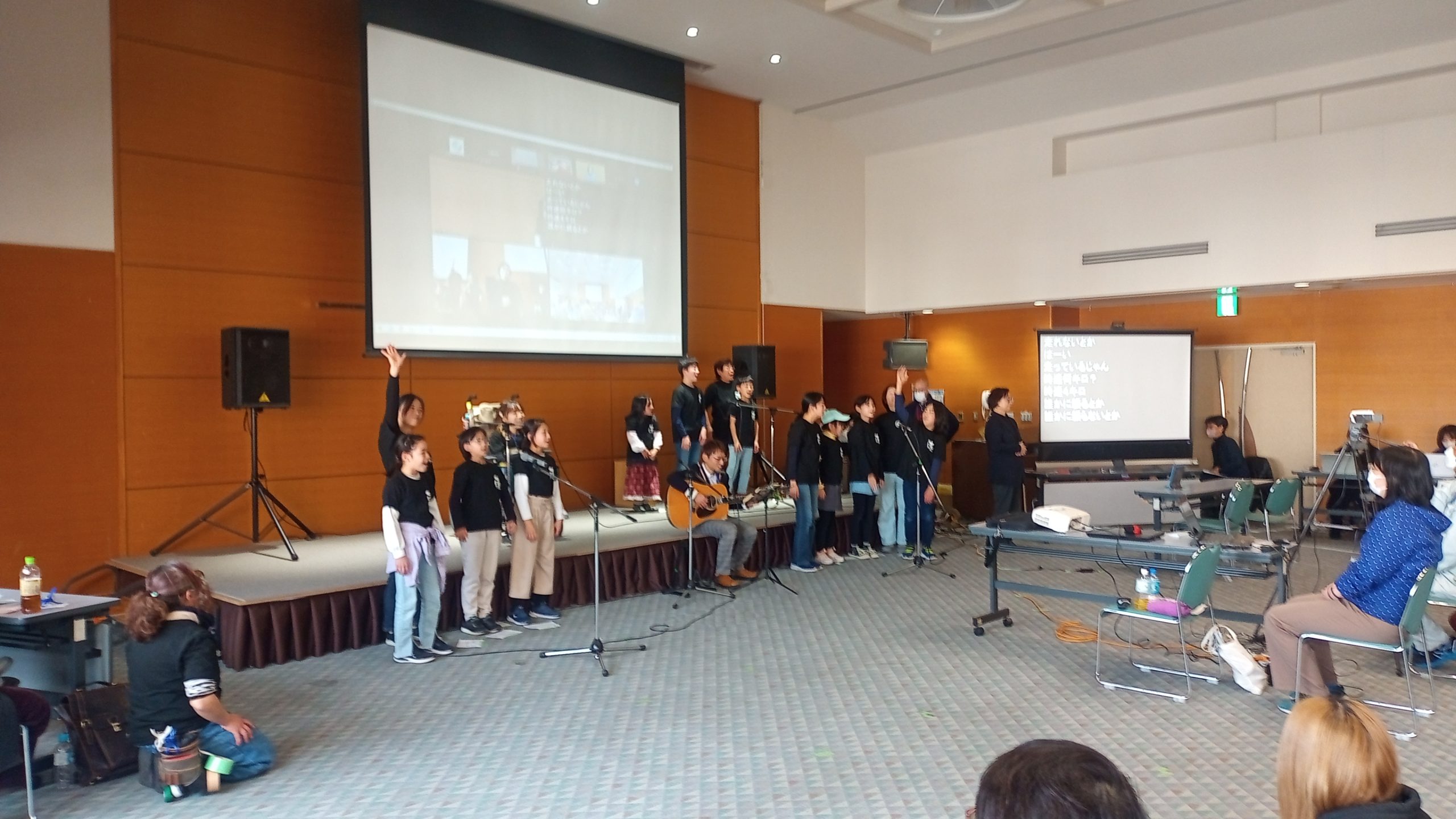 KOKAGE(一般の方の参加もOKな難病CAFE)参加者の曲をつけました。松浦常子さん(網膜色素変性症)作詞の「秋」、高橋愛実さん(脊髄性筋萎縮症)作詞の「はるのこもれび」を、難病当事者の須賀智哉さんが曲をつけ披露しました。高橋愛実さんは、砥部町の麻生児童館民話サークルの子どもたちと共に、はつらつとパフォーマンスしました。 - つたえる、ひろがる、つたわる- Our odyssey with RARE