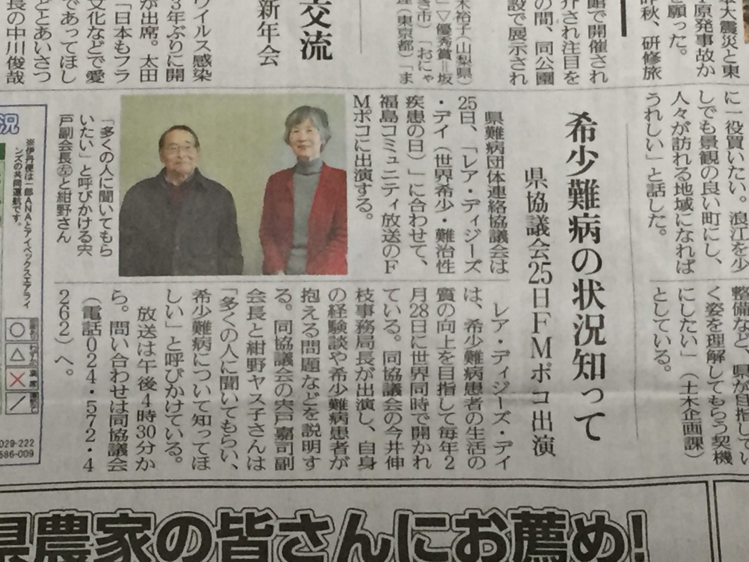 ラジオ出演1名(日本筋ジストロフィー協会)、新聞社訪問2名(腎臓病協議会、筋無力症友の会)
