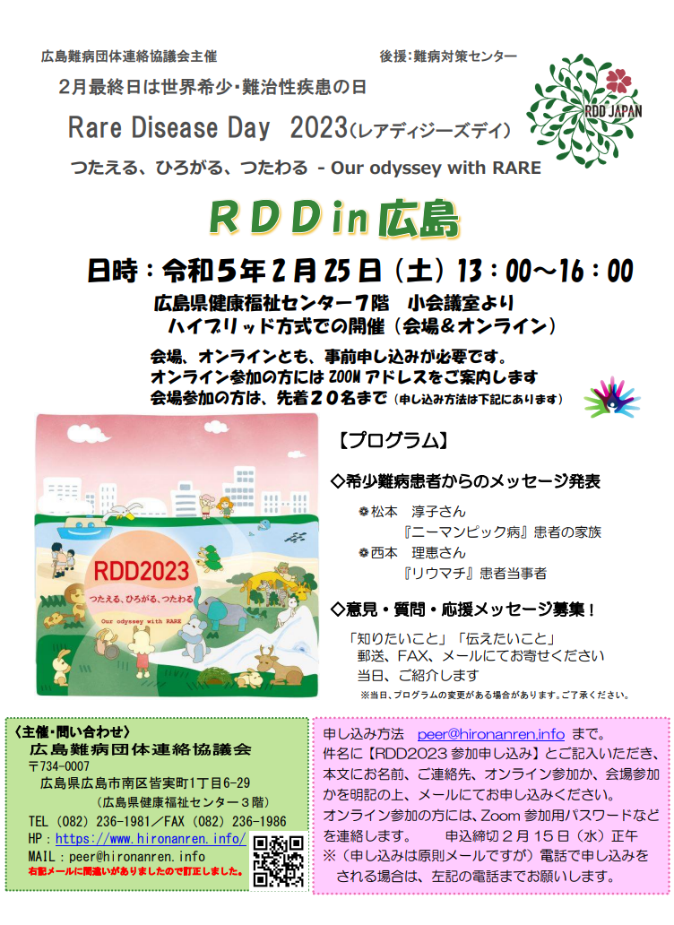 〒734‐0007 広島県 広島市 南区皆実町1丁目6番29号 広島県健康福祉センター3階 広島難病団体連絡協議会
