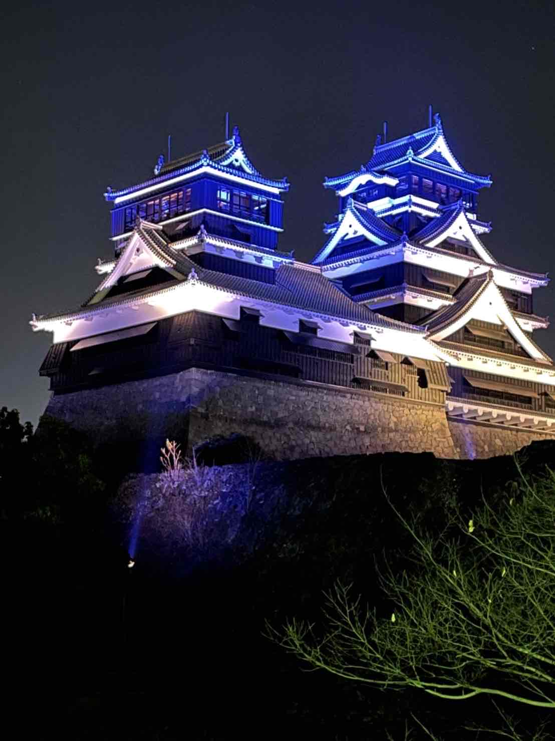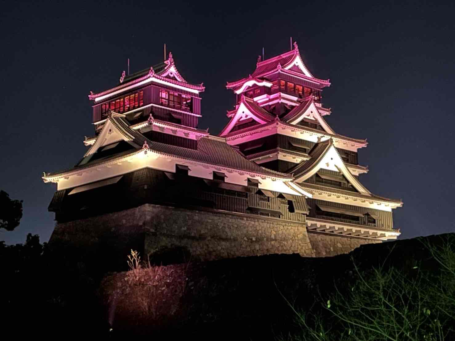 熊本城のライトアップも、三色に変わって、とてもきれいだった。