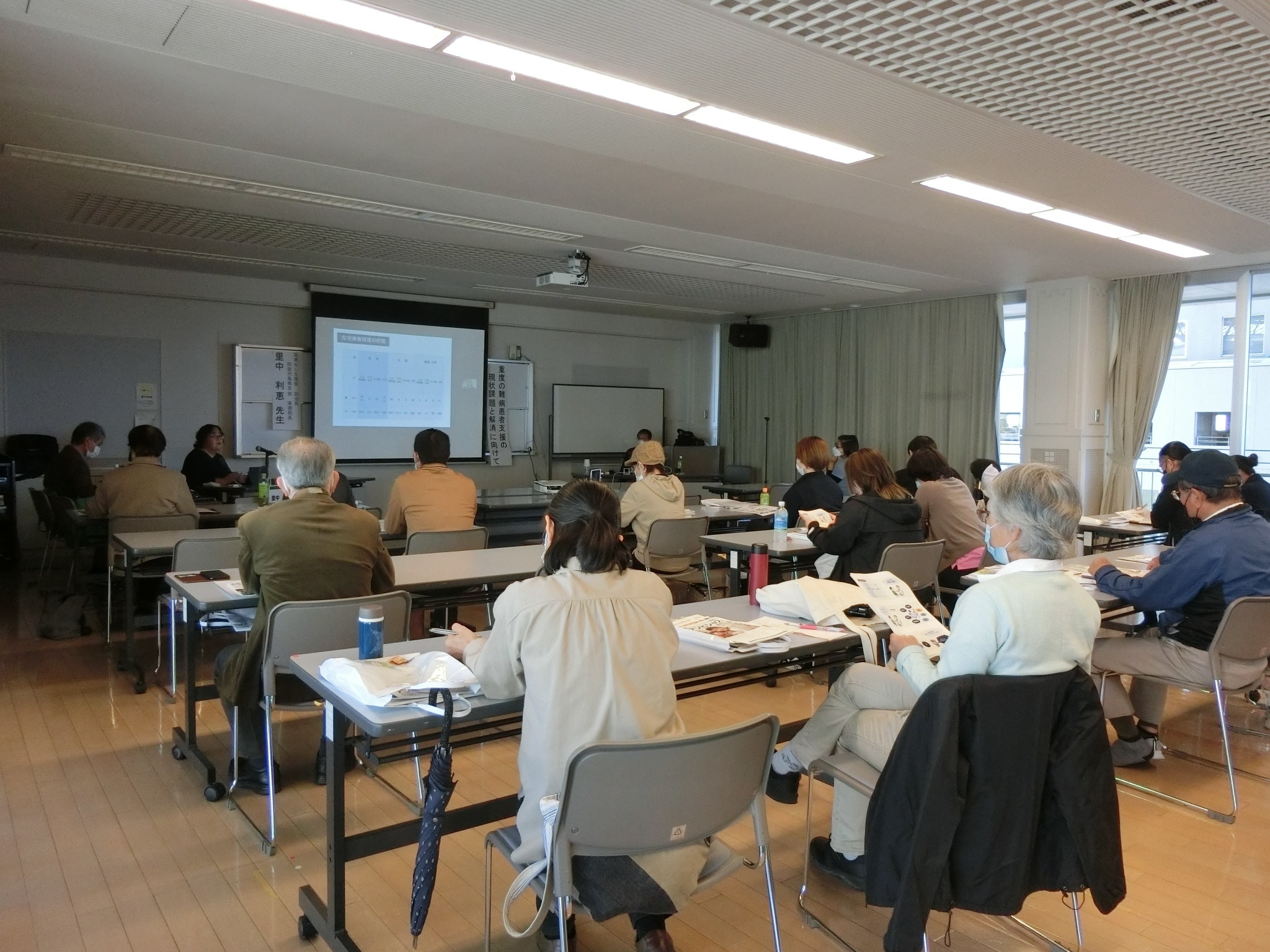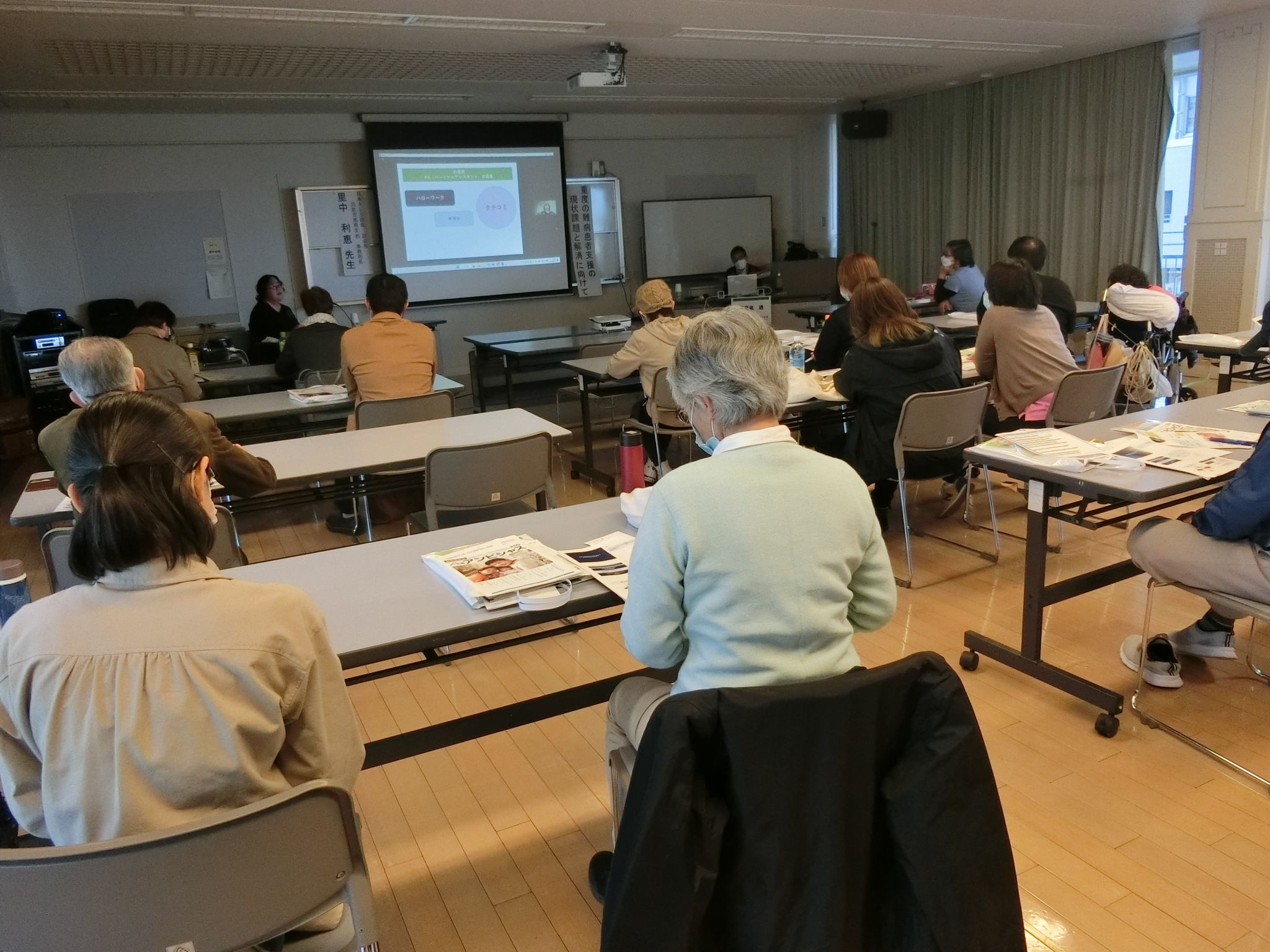 事前広報に力を入れ、各難病患者団体、各保健所、各地区医師会、沖縄県理学療法士協会、ケアマネ協会、各市町村障害福祉関係部署、各訪問看護事業所、JPA全国加盟団体、看護大・看護専門学校等へ案内文書送付と拡散を要請。