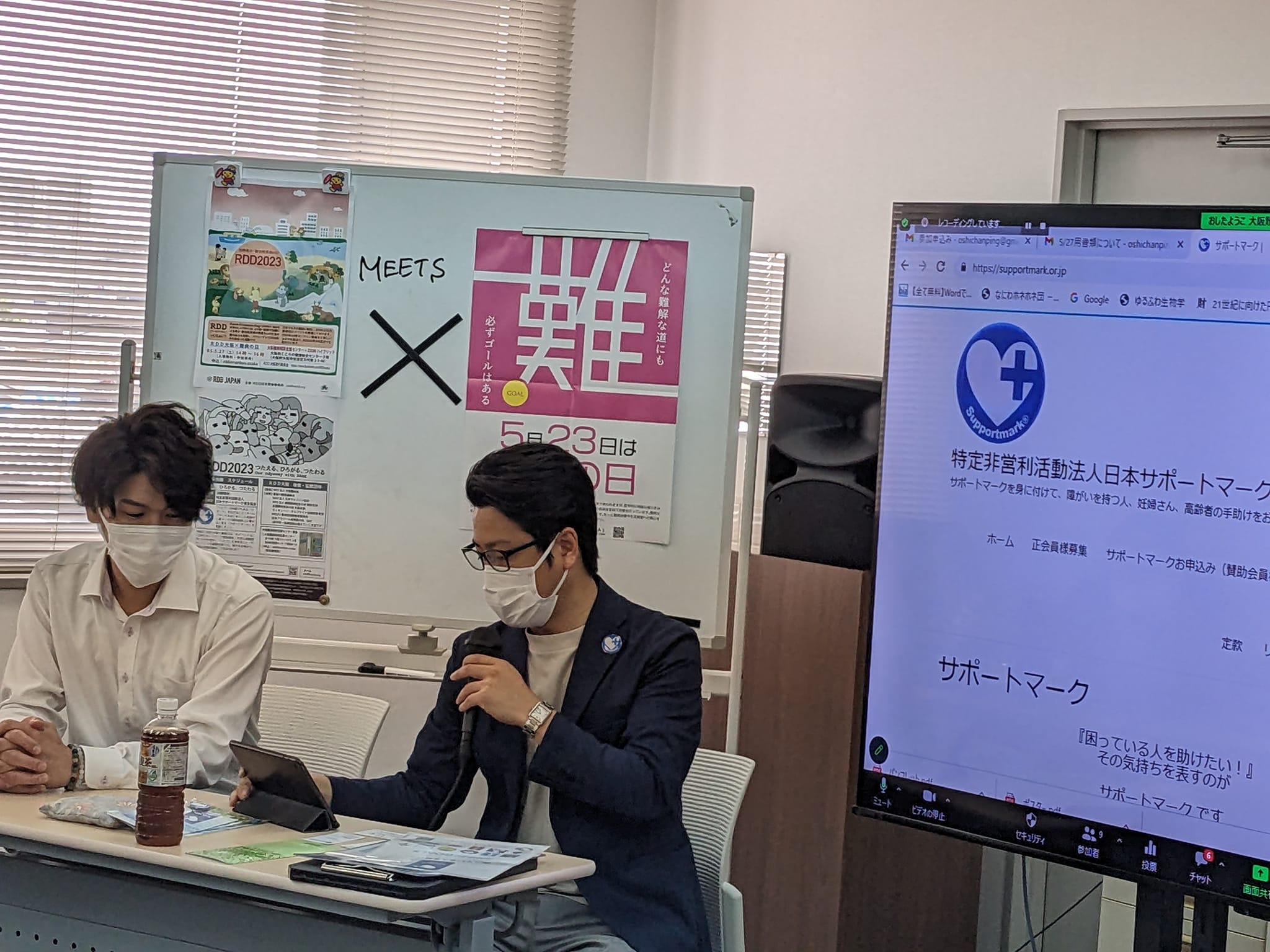日本サポートマーク普及協会の方に話題提供いただき、考えるヒントをいただいた後に、皆さんでサポートとヘルプの支えあいの関係について意見交換した。