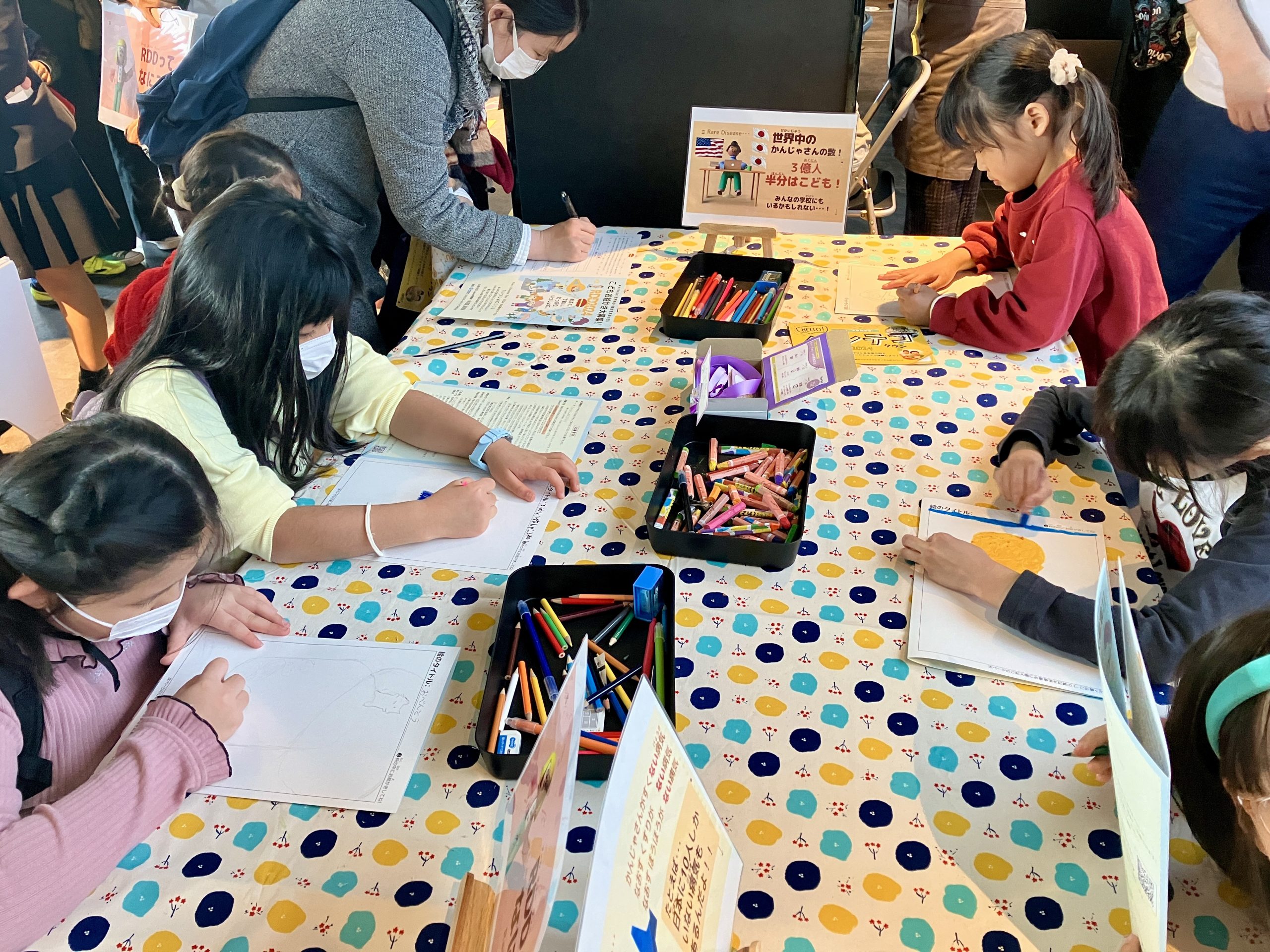 希少難治性疾患の半数はお子さんが多いことから、お絵かき大募集では、RDD 浜松町ビルディングのサポーターがファミリーの集まるイベント、学校などに出向いて希少難治性疾患の啓発活動を展開、多くのお子さんたちに絵を描いてもらい、応援メッセージもいただくことができ、昨年以上の啓発活動ができました。