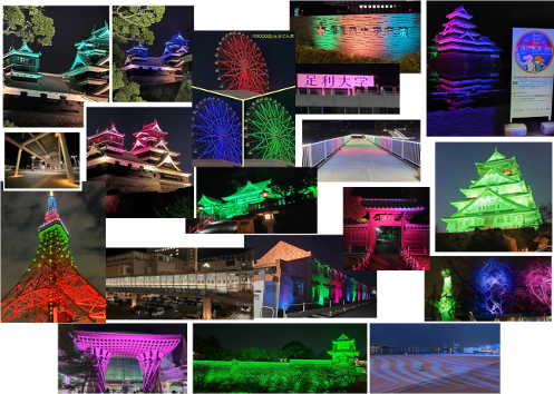 今年も世界中で多くの場所や建造物がRDDカラー(グリーン・ピンク・ブルー)の3色にライトアップされます。 日本でも、2021年の東京タワーのライトアップを皮切りに、多くのライトアップの催しが行われています。