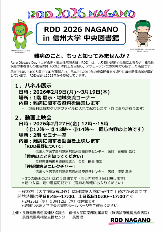 企画名:RDD 2026 NAGANO in 信州大学 中央図書館