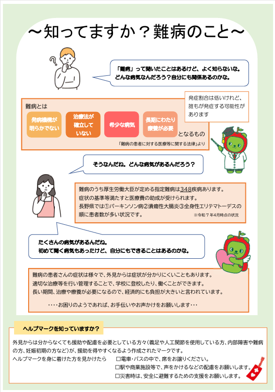 主催:長野県難病患者連絡協議会、長野県難病相談支援センター、信州大学医学部附属病院信州診療連携センター(難病診療連携拠点病院)、長野県
