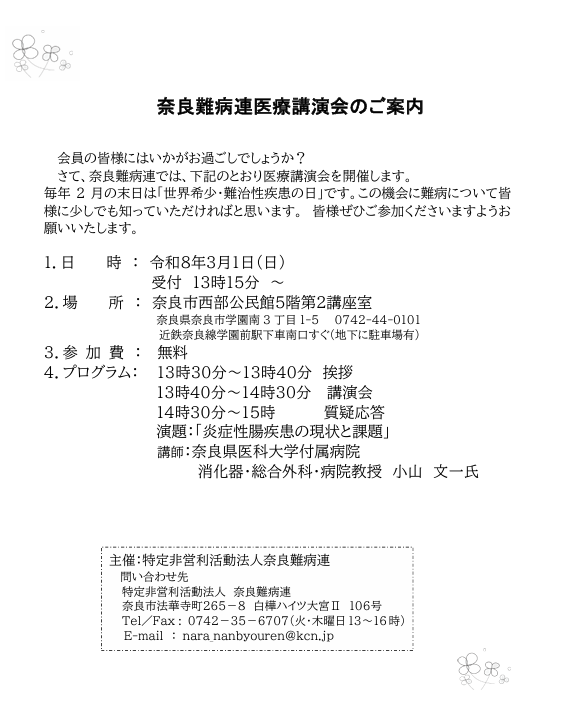 主催組織: 特定非営利活動法人奈良難病連(担当:春本)
