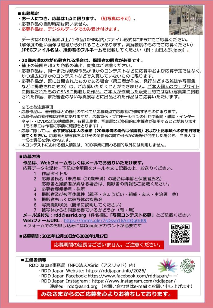 メール送付先:rdd@asrid.org(件名欄に「写真コンテスト応募」とご記載ください。